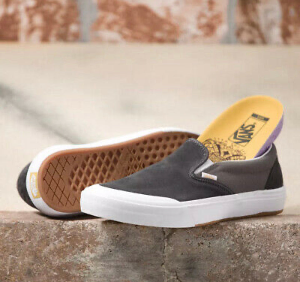 The WAFFLECUP™ BMX is now available in a slip-on style. The iconic Vans-style upper with DURACAP™ reinforcement, on top of our WAFFLECUP™ BMX construction, gives the BMX Slip-On maximum pedalfeel and durability. . .with a timeless style. This slip-on BMX shoe also features sturdy suede and 10 oz canvas uppers, rubber toe caps, and Vans original waffle outsoles made of a rubber that offers grip and support.